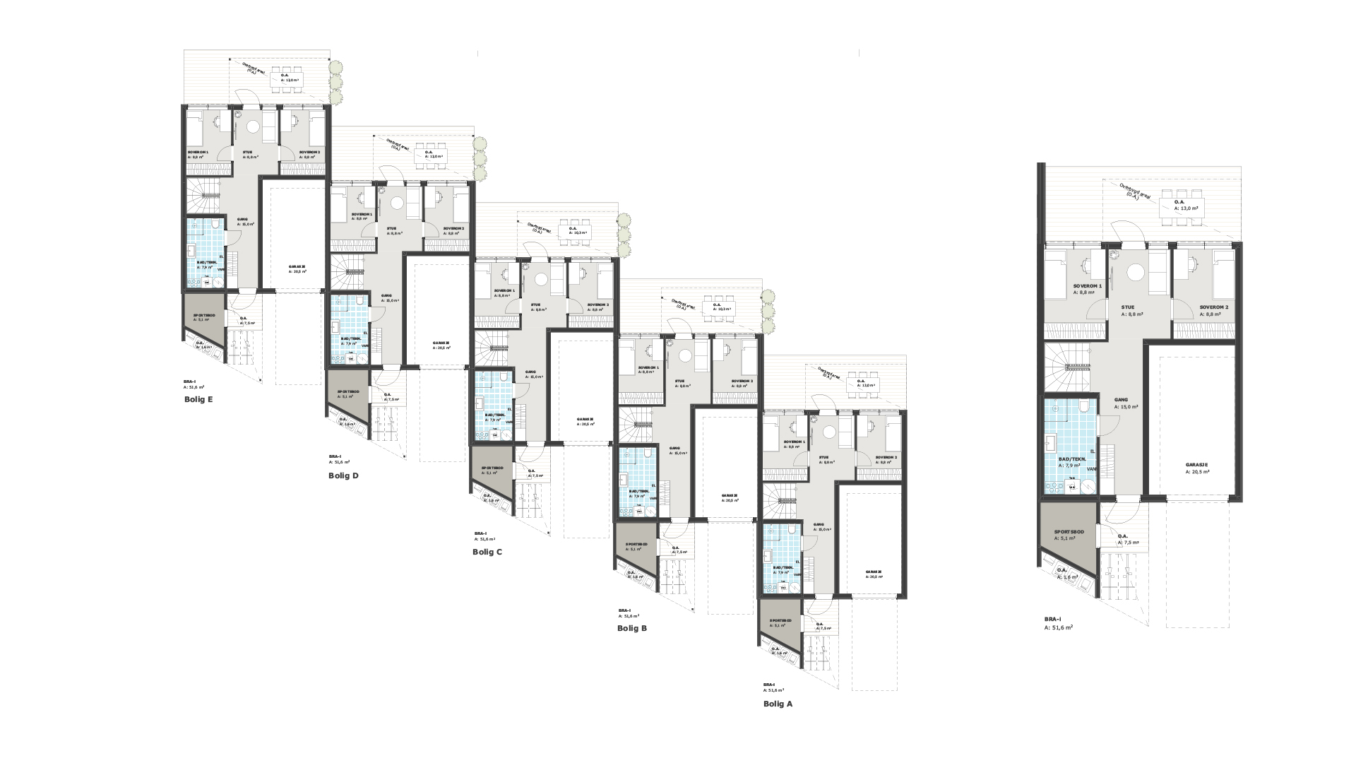 Kommer for salg: 3 eneboliger i kjede